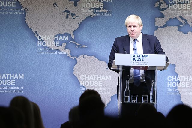 Boris Johnson speaking of Beyond Brexit Global Britain at Chatham House, London; Image Foreign &Commonwealth Office CC 2.0 on Wikimedia Commons
