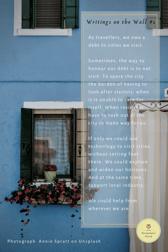 I didn’t intend this to be the next of my posts in the Writings on the Wall series, but with Venice flooded and the government there declaring a state of emergency in the city, I thought it might be appropriate to pay my homage to the magnificent city and send the people there my best wishes. And I was fortunate enough to find Annie Spratt’s photograph of Venice, just right for this piece.