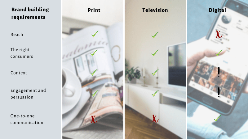 Let us look at what brand building requires from a medium and see how digital matches up to each.