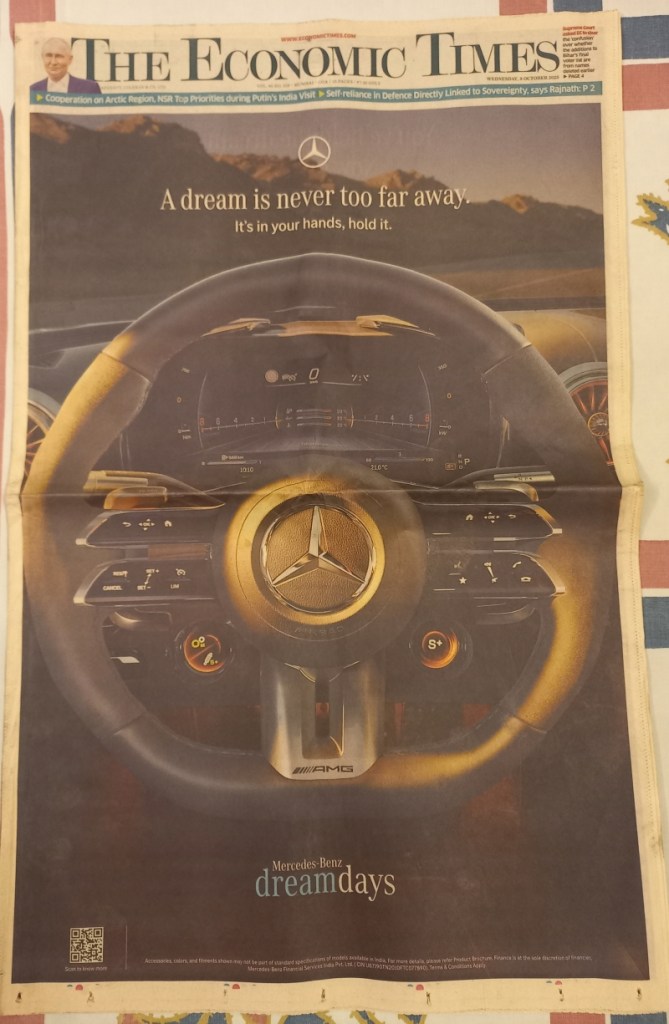 Instead, what I saw in the newspapers were adverts created and motivated by unprofessional PR agency idiot bosses that were full of their usual colour-coded nonsense and perverted and vulgar references to women’s appearances and bodies. These were especially true of adverts for Tata Motors and BMW, both of which I suspect were prompted by the same set of PR idiot bosses as they reflected similar thinking, if there was any thinking at all. The red and green cars Tata Motors advert was followed by the BMW grey and blue advert the next day, followed by the grey and red Tata Motors Punch advert on the third day. The colour-coded nonsense is in reference to some of my sarees, and the way the cars are depicted are complete PR agency idiots’ vulgar mischief and proves why I say they are unfit to be in the corporate world and ought to be booted out of the industry. What the marketing folks at Tata Motors were doing allowing such work is anybody’s guess! Then, if BMW is communicating joy days, Mercedes Benz is talking of dream days! This is the pathetic level of competition between these two rival international luxury brands.